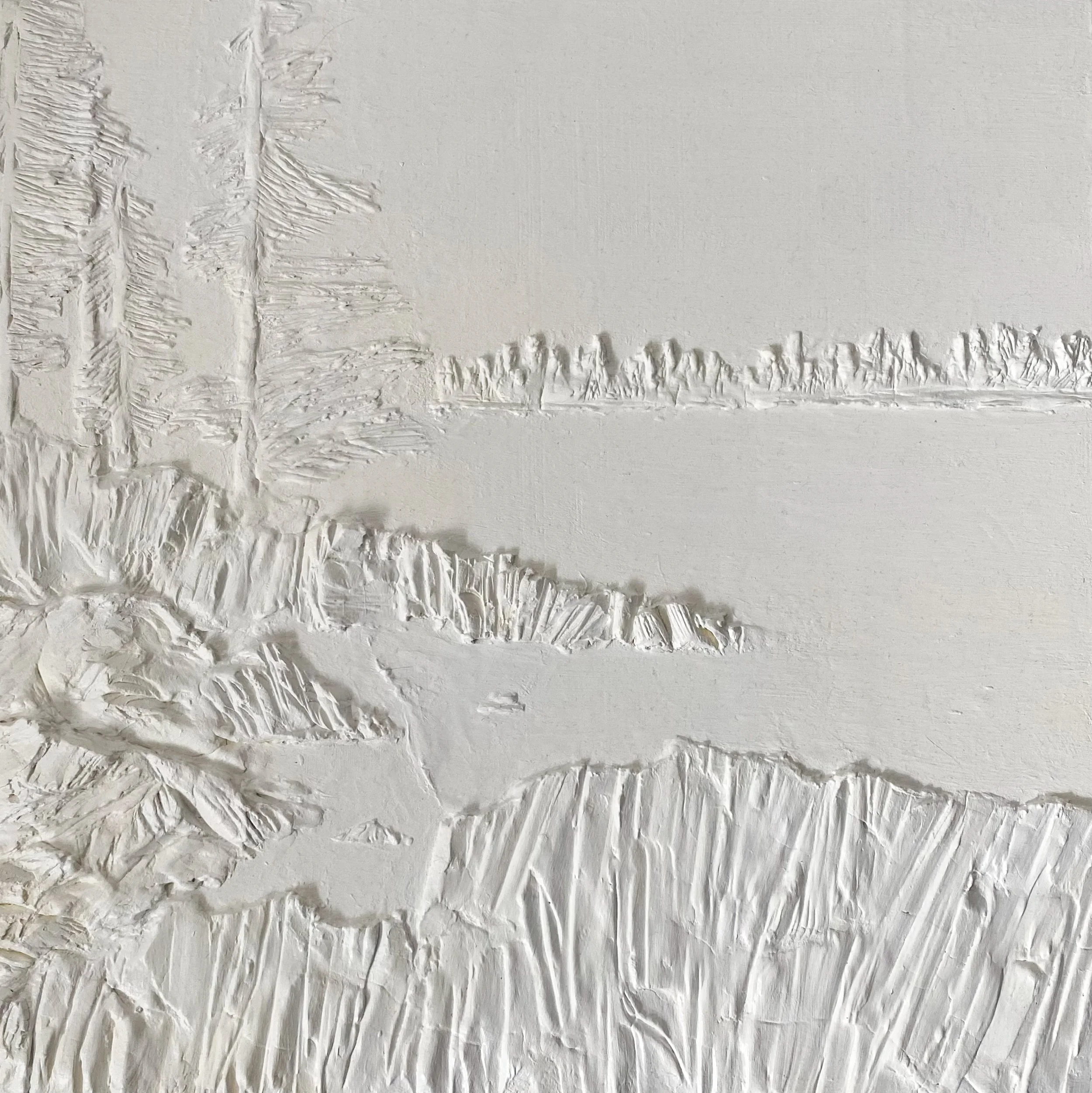 12x12 Sculpted Clay on a Birch Wood Canvas, Coated in Titanium White Acrylic Paint